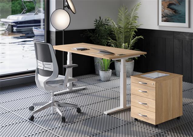 Ergonomikus íróasztal elektromos magasságállítással egy gomb megnyomásának segítségével.