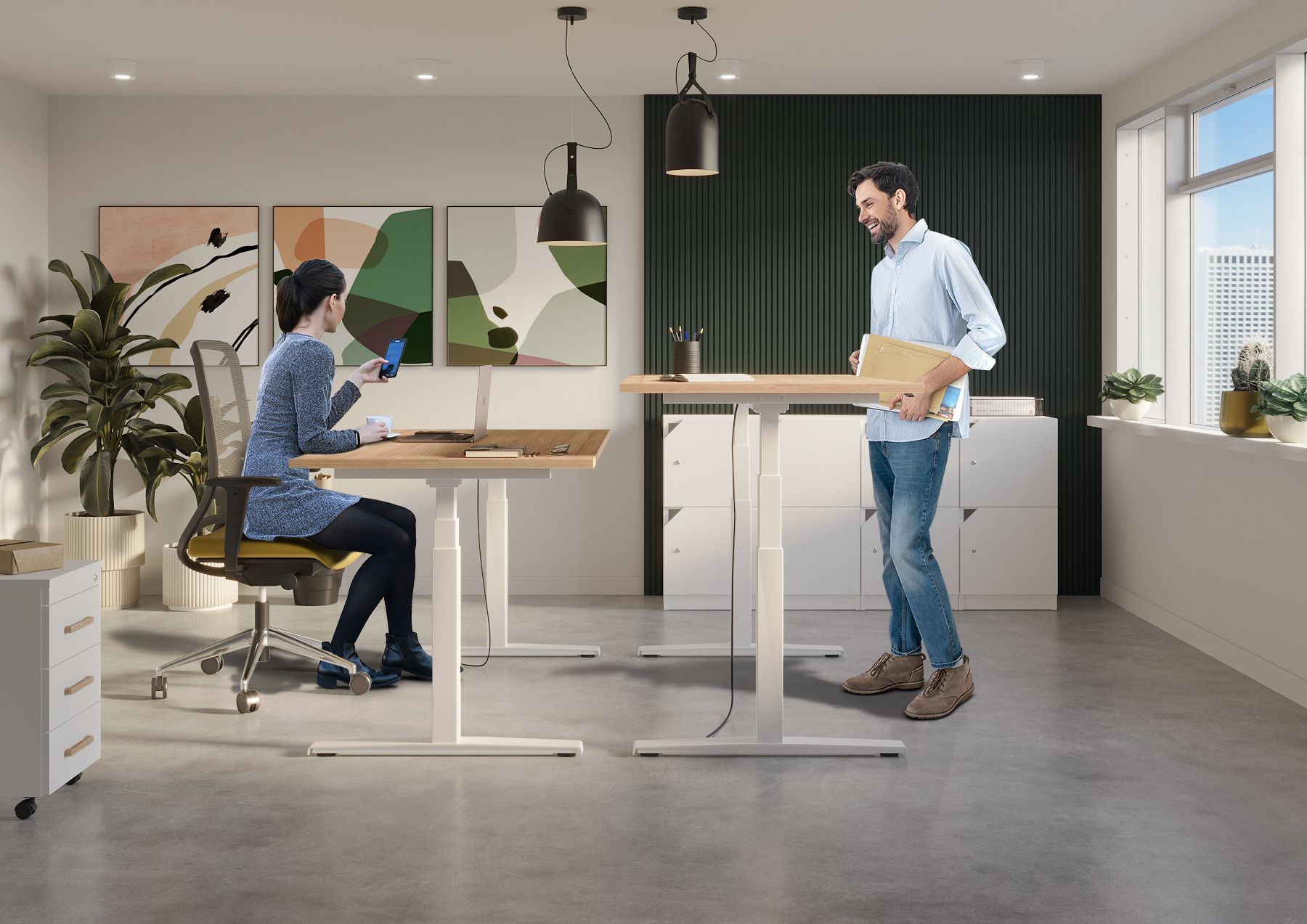 Egy modern irodában az állítható magasságú asztal nem luxus, hanem szükséglet. Az állva végzett munka segít a vérkeringés javításában, az energiaszint fenntartásában és a helyes testtartás kialakításában, ráadásul több kalóriát égetünk el állva. A szakértők javaslata szerint érdemes óránként 15-20 percet állva dolgozni, ezzel jelentősen csökkenthetők az ülőmunka negatív hatásai.
