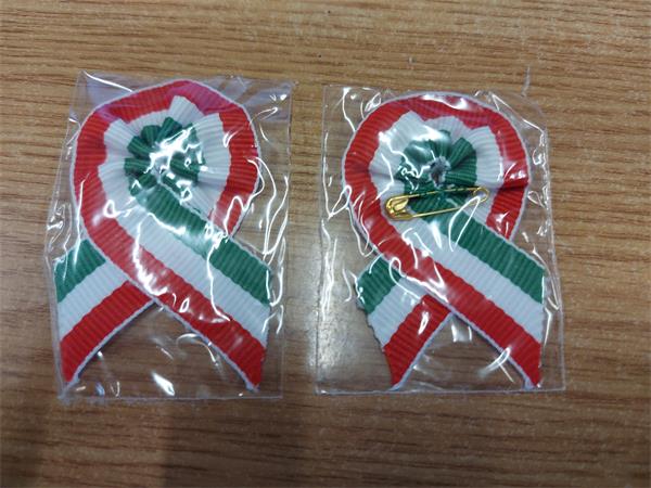 Kokárda: 3,5 cm széles, 6 cm magas, hátulján biztosítótűvel ellátva, egyesével csomagolva.