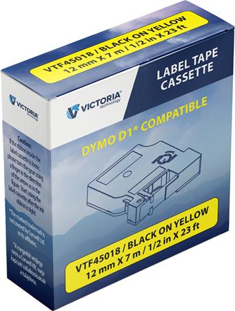 Feliratozógép szalag, 12 mm x 7 m, VICTORIA TECHNOLOGY, sárga-feketeAlapítvány támogatás 2 Ft