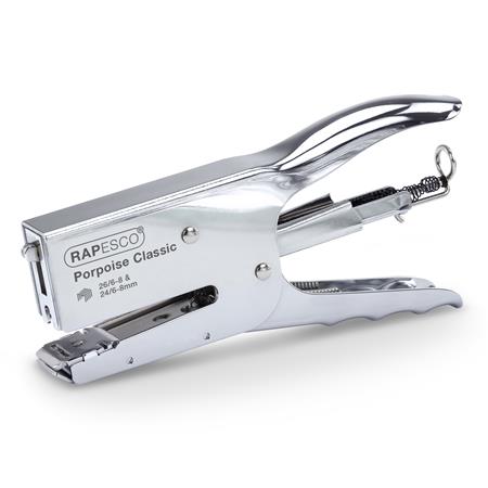 Tűzőgép, kézi, 24/6-8, 26/6-8, 45 lap, fém, RAPESCO "Porpoise", ezüst