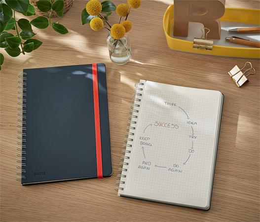 KezdőlapIrodaszerekIrodai papíráruFüzetek, gyűrűskönyvbetétekSpirálfüzet, B5, kockás, 80 lap, LEITZ, "Cosy Soft Touch", bársonyszürke