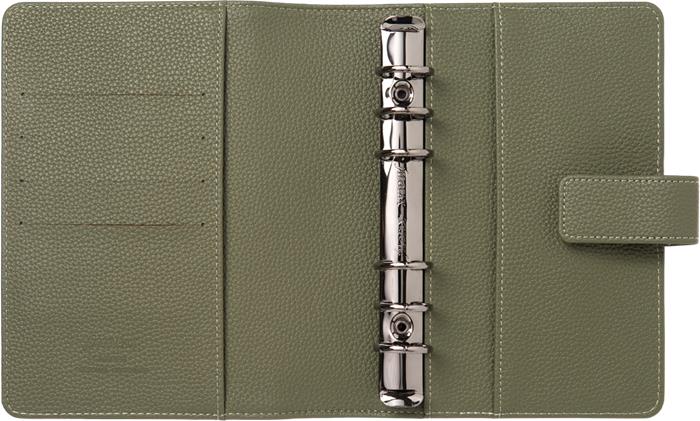 Kalendárium, gyűrűs, betétlapokkal, personal méret, FILOFAX "Camden", oliva