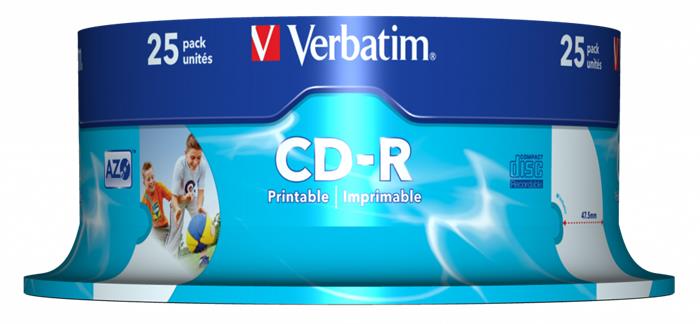 CD-R lemez, nyomtatható, matt, ID, AZO, 700MB, 52x, 25 db, hengeren, VERBATIM