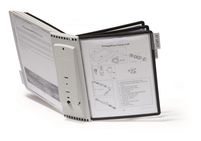 Bemutatótábla tartó, fali, 10 db bemutatótáblával, DURABLE "SHERPA WALL", szürke