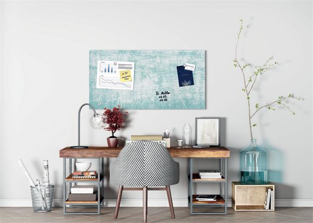 Mágneses üvegtábla, 91x46x1,5 cm, SIGEL "Artverum® ", türkizkék fal mintázat, matt