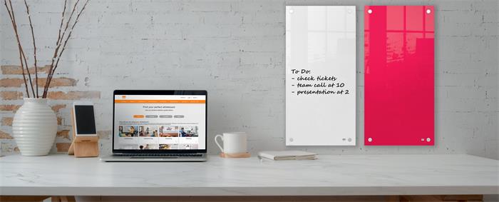 Kisméretű üvegtábla prémium minőségű üveg felülettel, hasznos kiegészítője lehet bármely otthoni vagy irodai munkaterületnek. Ideális fali üzenőtábla jegyzetek, teendők feljegyzéséhez akár kis falfelületekre is; egyszerűen írjon rá és törölje le. A kiváló minőségű üvegből készült tábla felület kiválóan ellenáll a tintafoltoknak és tollnyomoknak. A falra biztonságosan, a sarkokon keresztül rögzíthető vízszintes vagy függőleges felhelyezés esetén is.