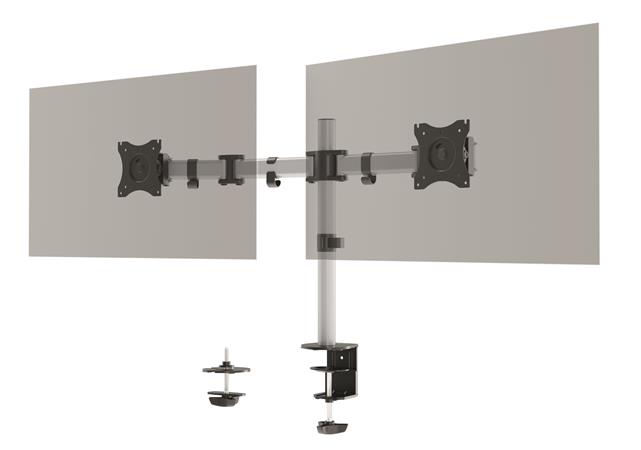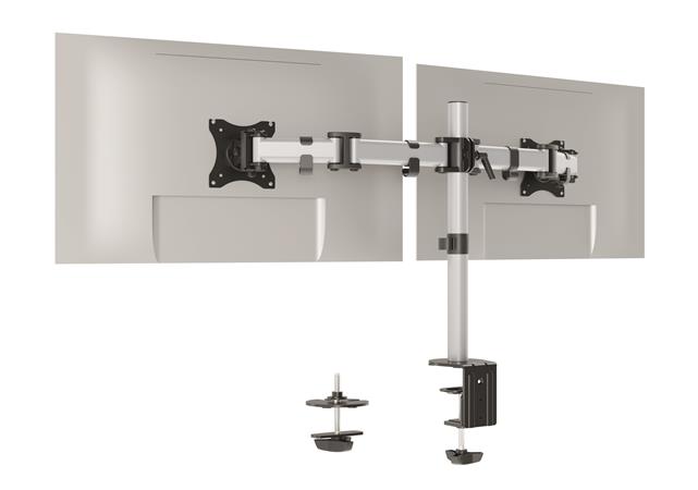 Asztalra rögzíthetó monitor tartó oszlop két képernyőhöz, állítható magassággal.