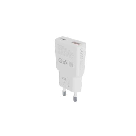 Hálózati töltő, GaN, USB-A + USB-C, AVAX "CH641W Nano Slim", fehér