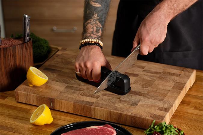 A háromlépéses (durva, közepes és finom) élezési folyamat néhány pillanat alatt professzionális szintű élességet eredményez.