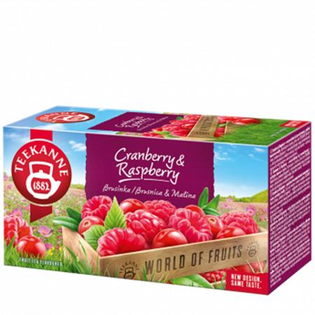 Élvezze a TEEKANNE World of Fruits "Cranberry & Raspberry" tea élményét - ez a tea a természetes gyümölcsök, valamint a friss vörös áfonya és az édes, napérlelte málna ízének különleges forrázata.