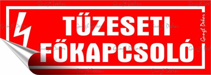 Információs matrica, 14x5 cm, "Tűzeseti főkapcsoló"